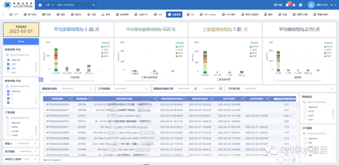 此外,同时应用在同一个平台上的设计,也显著减轻了以往各个应用之间信息互通的困难,解决了数据孤岛的难题。通过数字化应用的全面展开,对应的数据收集的工作,也就变的更加有效率。我们通过数据分析制作了各个应用的BI报表(图15,图16),通过报表中的数据分析,实时将结果反馈到各个业务的计划制订、流程优化等过程中。